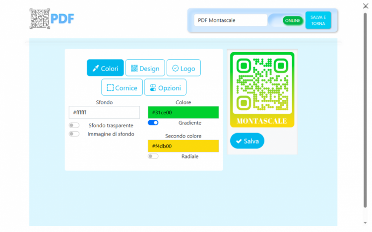 Dal colore alla scelta dello stile dei quadretti, passando per cornici e immagini di sfondo, potrai dar sfogo alla tua creatività per generare un Codice QR bello e riconoscibile. Non accontentarti del solito QR Code in bianco e nero, sbizzarrisciti con forme e colori per creare il Codice QR per il tuo File PDF.